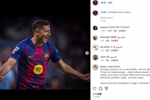 帽子戏法!莱万赛后发表感言:很开心全取三分,回头见!