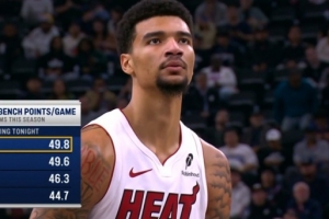 转播方给出数据:今日比赛之前,热火本赛季替补场均共得49.8分,联盟第一。